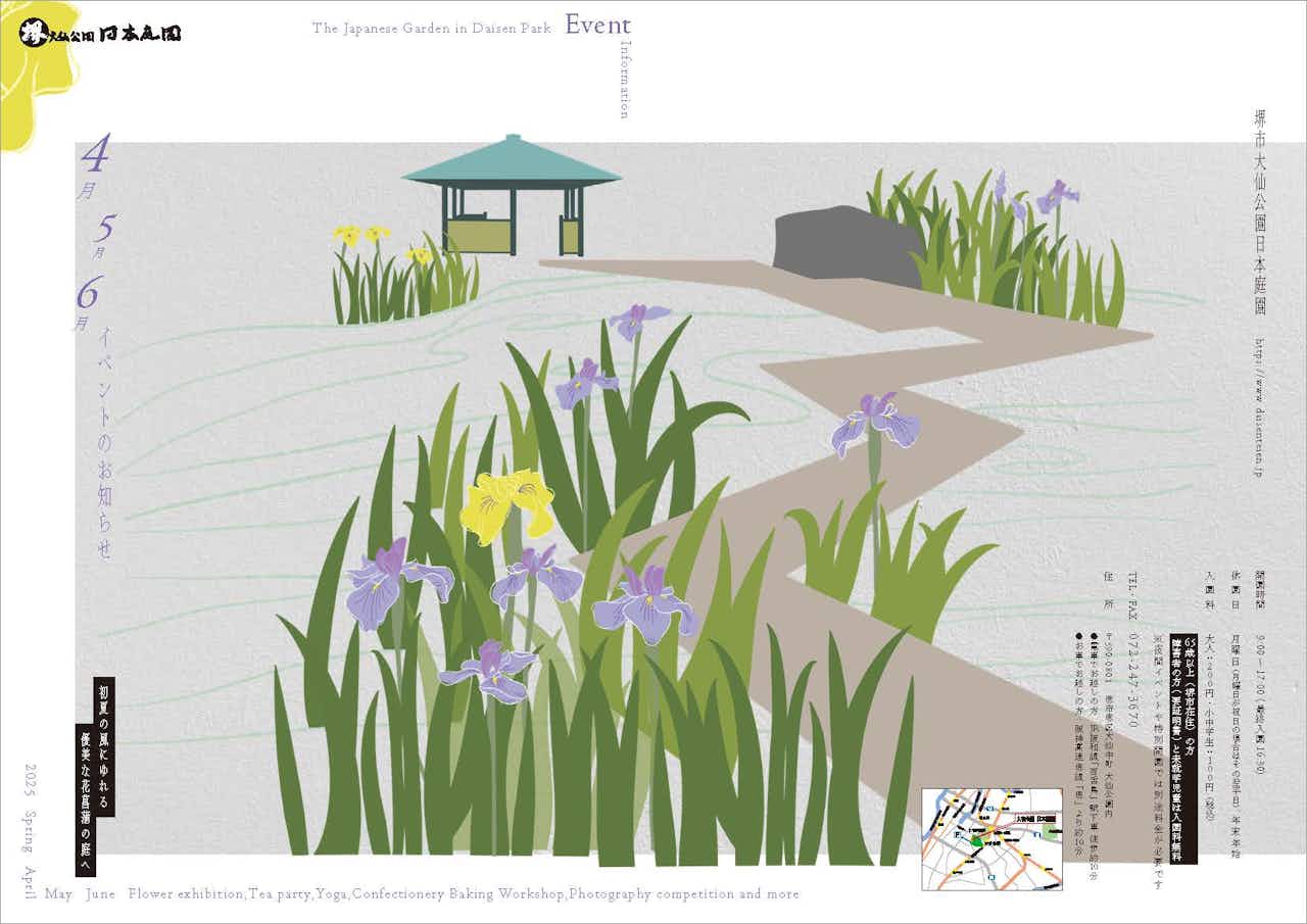 お知らせNews大仙公園日本庭園の最新のお知らせをお届けします。投稿年ALL2026202520242025.02/14イベントリーフレット(4~6月)発行のお知らせ(読む)(読む)2024.11/08呈茶(茶店)営業時間変更のお知らせ(読む)(読む)2024.11/16イベントWEB予約システム導入のお知らせ(読む)(読む)2024.10/31堺の魅力を発信する特設Webページ公開のお知らせ(読む)(読む)2024.10/16パンフレットリニューアルのお知らせ(読む)(読む)12345678ホームお知らせ